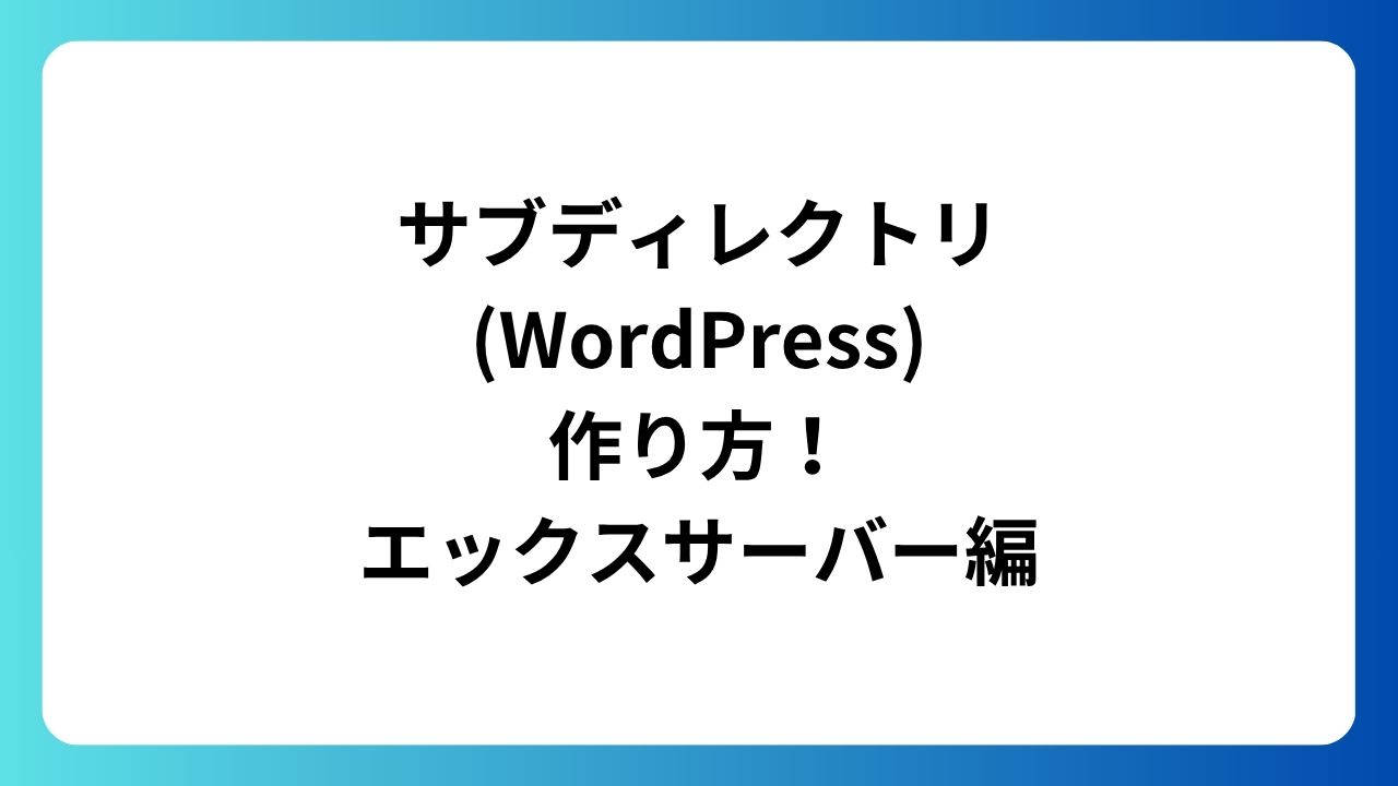 サブディレクトリ(WordPress)作り方!エックスサーバー編